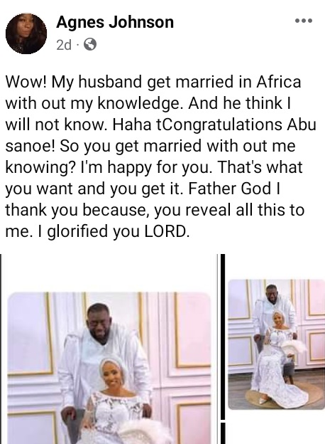 A US-based woman, Agnes Johnson has been criticized for calling out her husband after he secretly married a second wife.