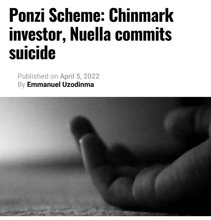 Ponzi Scheme: Chinmark Investor, Nuella Commits Suicide