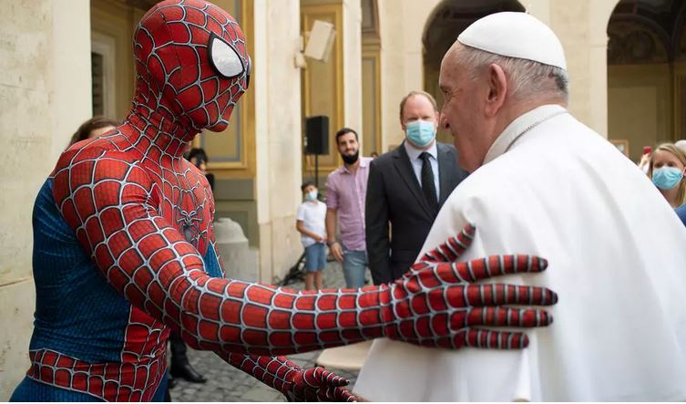 The head of the worldwide Catholic Church, Pope Francis had an unusual encounter at his Wednesday audience meeting a Spider-Man impersonator who usually dons the outfit to entertain sick children.