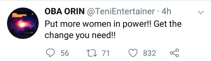 It began with Teni tweeting: “Nothing wrong in a woman being the bread winner!”