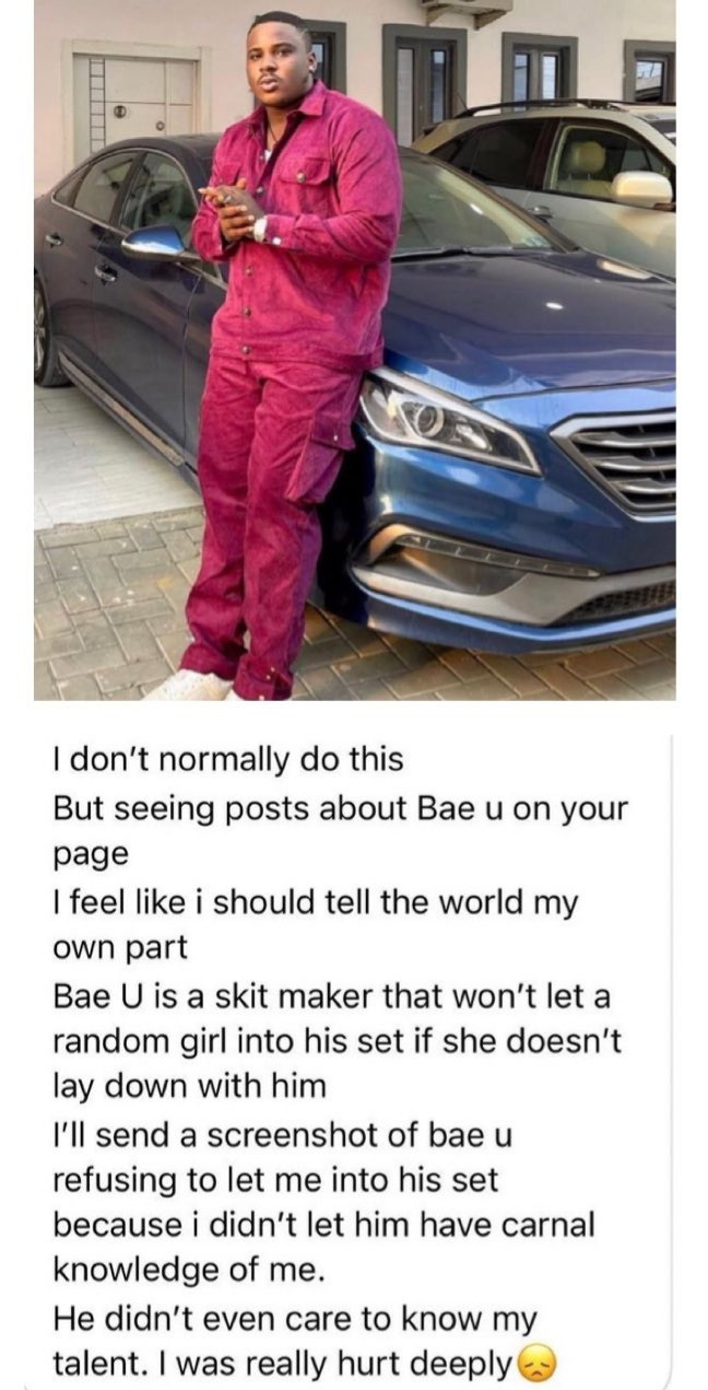 The popular skit maker has been accused of demanding sex from women before featuring them in his skits. Any woman who refuses to have sex with him is usually denied the role, it’s been alleged.