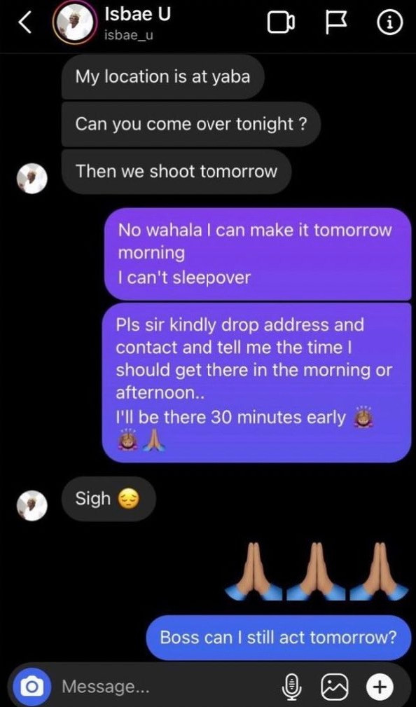 The young man is being dragged after alleged chats he sent asking girls for s*x for roles were shared online.