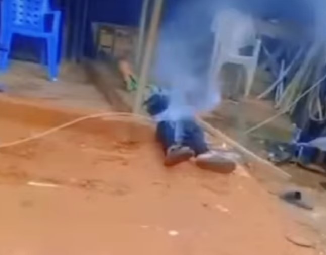 A video currently circulating on social media shows the lifeless body on the ground, with the high-tension cable draped across it and emitting smoke.