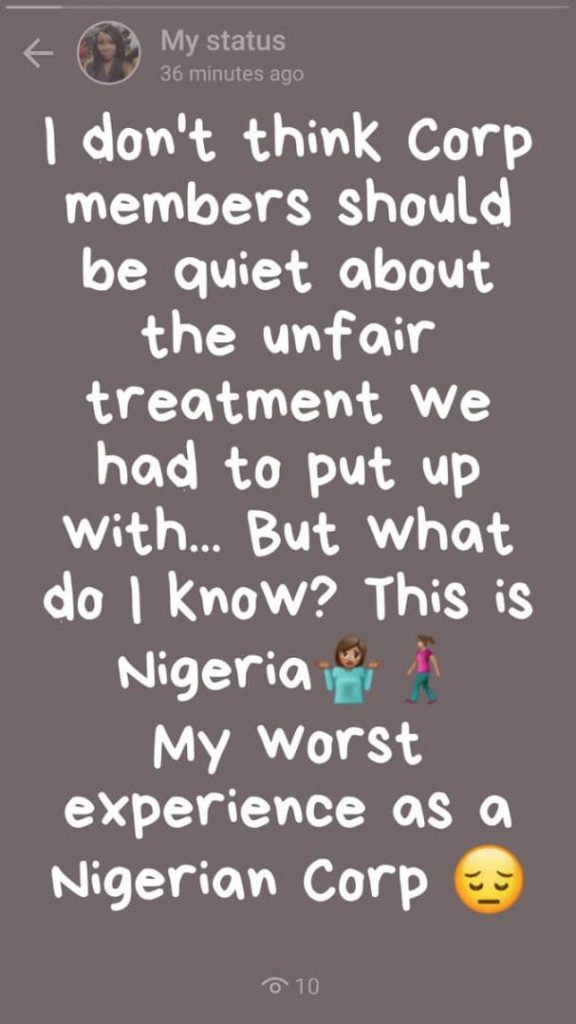 Fellow Nigerians & dearest Corps Members, the sole problem of this country is the silly change brought to us by these unscrupulous, tyrannical Politicians!