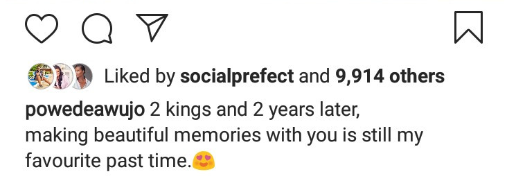 She captioned it: “2 Kings and 2 years later, making beautiful memories with you is still my favourite past time.”