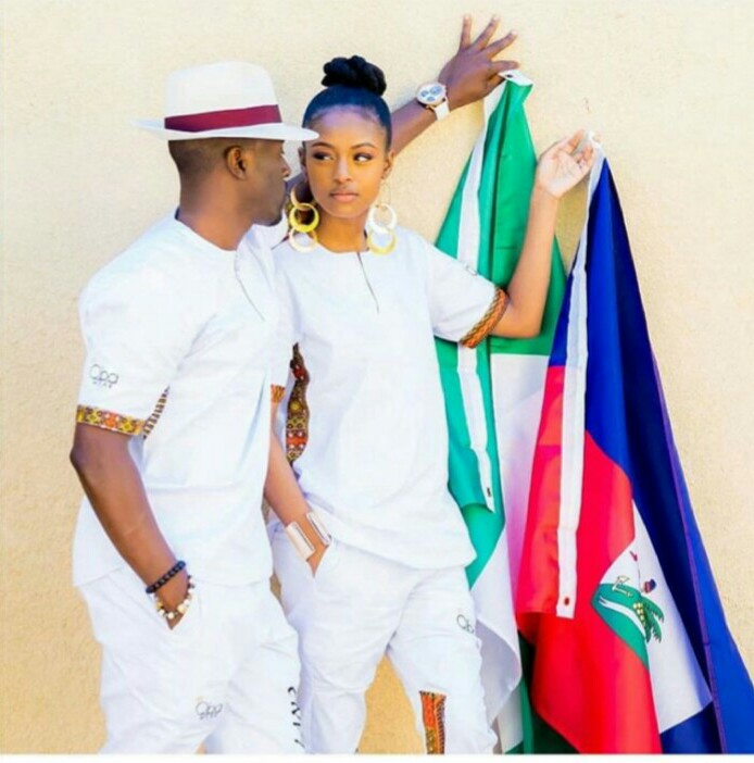 Adorable Pre-wedding photo of Nigerian man & his haiti’s fiancee holding their national flag. They dazzle in matching outfits!
