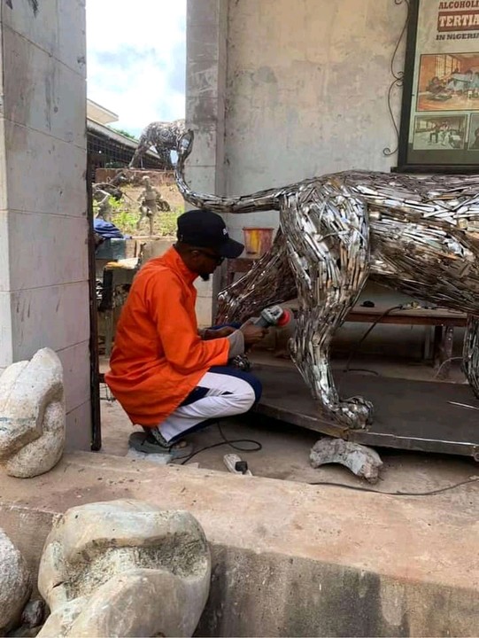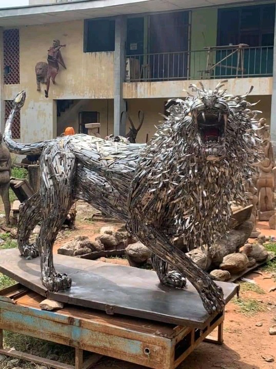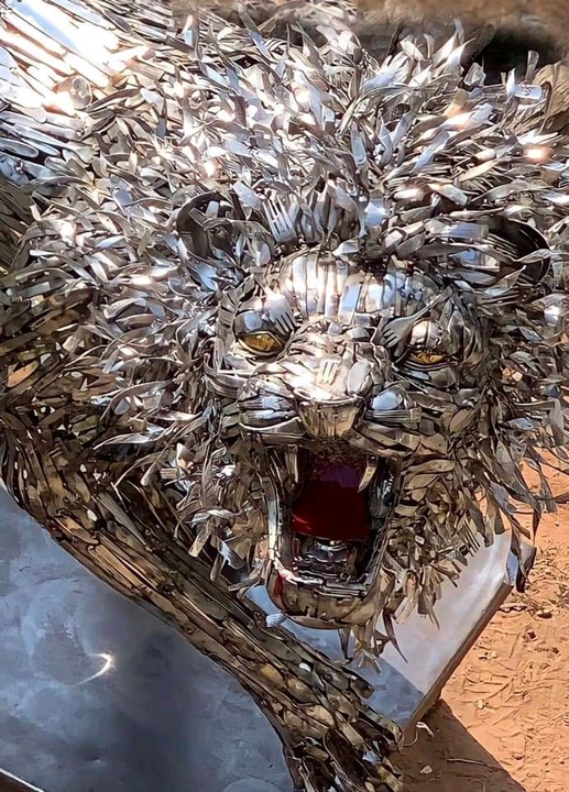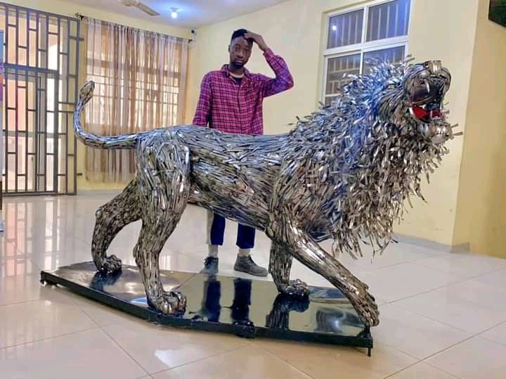 A Nigerian man Precious Eboigbodin has created a lion Sculpture with spoons, knives and folks.