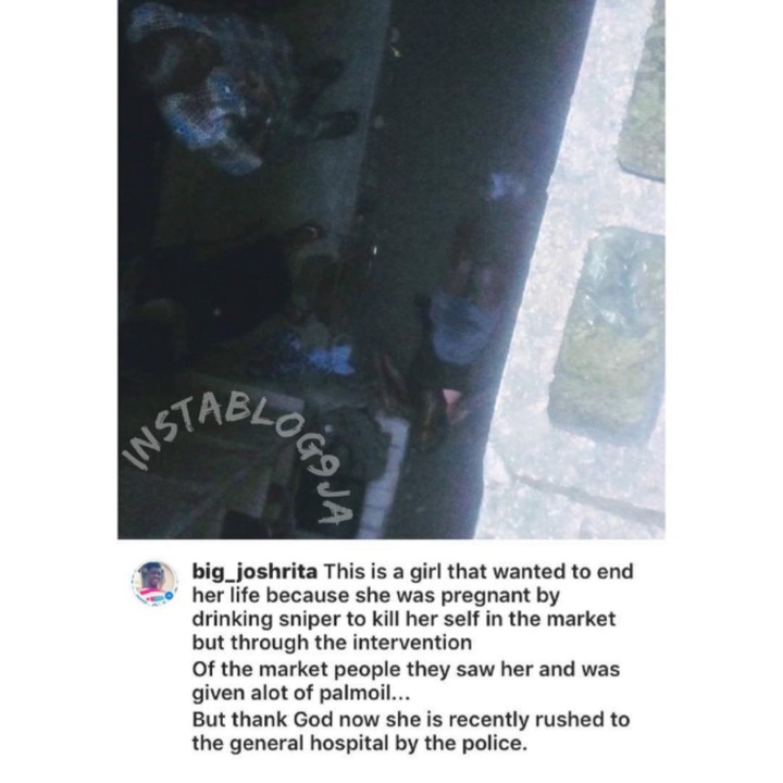 A Girl has been rescued in Igando, Lagos after drinking sniper because she is pregnant.