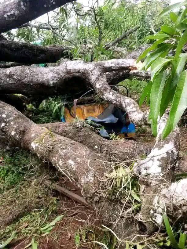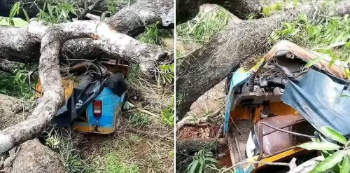 The tricycle was reportedly conveying the couple home when the decades-old mango tree suddenly gave way and crashed onto the moving vehicle.
