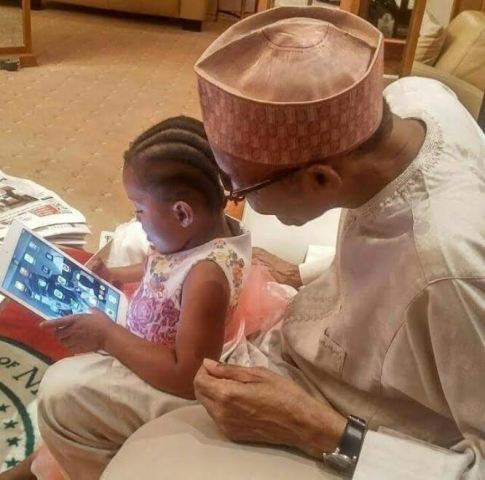Pres. Buhari pictured spending time with his Grand daughter (see photo)