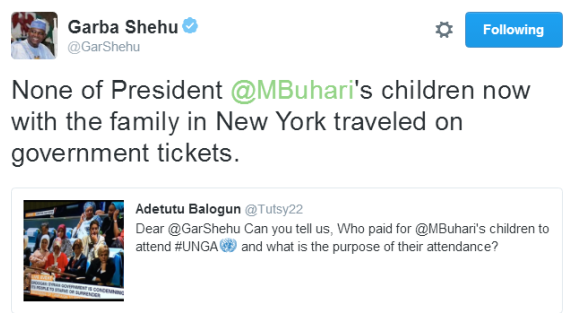 Presidency says none of Buhari’s children traveled to the US with him on government tickets