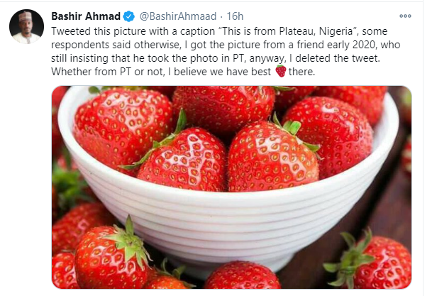 Personal Assistant To The President On New Media, Bashir Ahmad has reacted after Nigerians called him out for using a photo of strawberries from an Indian article to pass off as the ones from Plateau State.