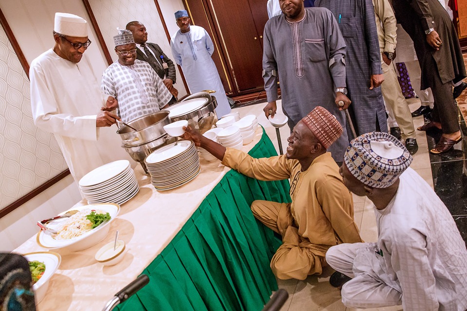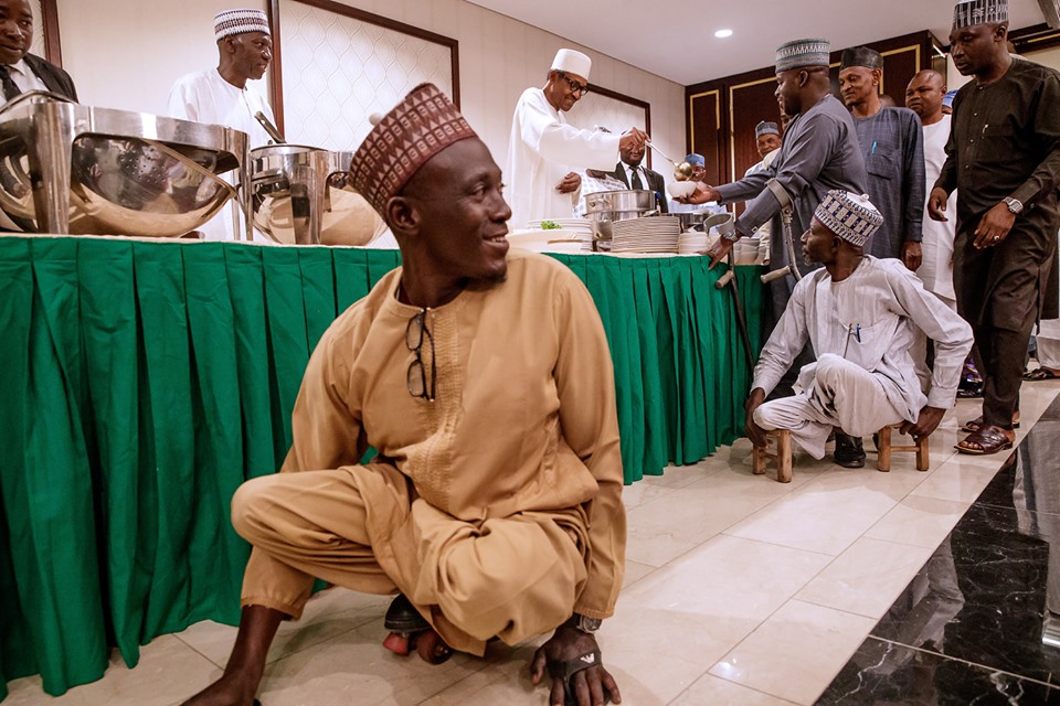 President Buhari last night broke his Ramadan fast with some Uniquely-Challenged Nigerians as well as Artistes, IDPs and Artisans.