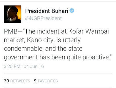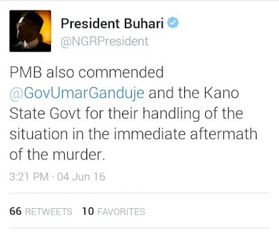 President Buhari has reacted to the murder of an Igbo Woman in the Market in Kano, over alleged Blasphemy. According to the President, Justice would be done. See more tweets from his official twitter handle after the cut…