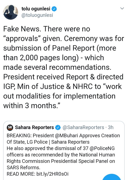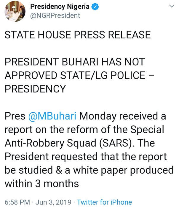 There was a previous report that stated that President Buhari had approved the establishment of state and local government police.