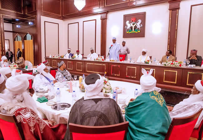 President Muhammadu Buhari hosted traditional and religious leaders to an Iftar meal (breaking of Ramadan fast) at the Presidential Villa, Abuja, on Monday.