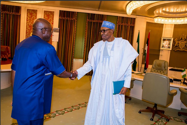 President Muhammadu Buhari today received in audience former senate president David Mark, the New Group Managing Director of the Nigerian National Petroleum Corporation, Maikanti Baru, Governor of Zamfara and Katsina State -Abubakar Yari and Aminu Bello Masari in the Statehouse, Abuja.
