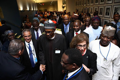 Pres. Buhari pictured his wife Aisha Buhari shortly after he addressed World Leaders at UNGA 71 in NewYork yesterday 20th September. Also in the photo are Wife of the Kebbi State Governor Dr Zainab Atiku Bagudu, wife of Oyo State Governor, Mrs Florence Ajimobi, Wife of Ogun State Governor, Mrs Olufunso Amosun & Senior Special Assistant to Wife of the President, Mrs Hajo Sani