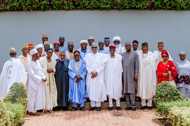 President Buhari today receives in courtesy visit members of Arewa Consultative Forum in State House. They came to congratulate him on his re-election bid and also to charter on a new course for the North zone.