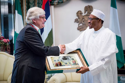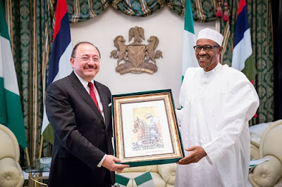 President Buhari yesterday received M. Anthonio Garcia Blanco, the outgoing ambassador of the United Mexican States to Nigeria and Rolf Ree, the outgoing ambassador of the Kingdom of Norway to Nigeria, at the State house Abuja.
