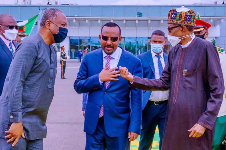 President Buhari with Ethiopian Prime Minister Abiy Ahmed as he departed Addis Ababa on 5th Oct 2021