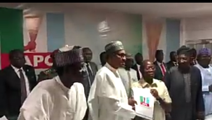 President Mohammed Buhari as just submitted his nomination form in Abuja to APC Chairman, Adams Oshiomole.