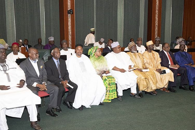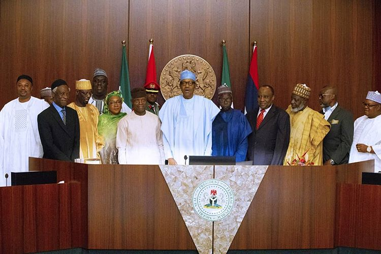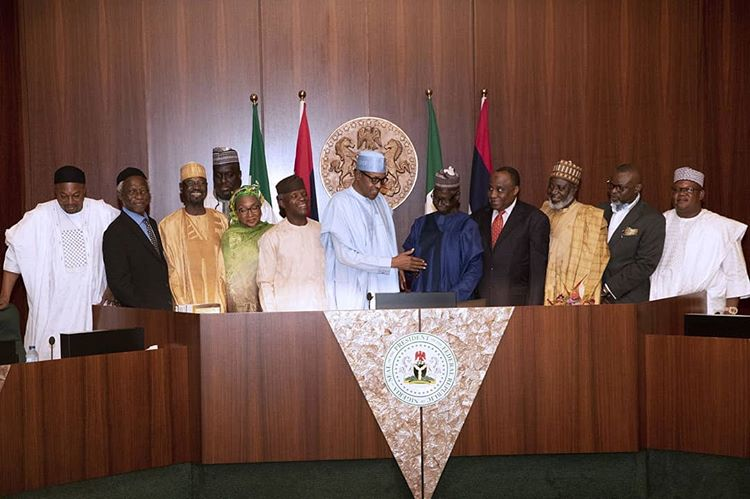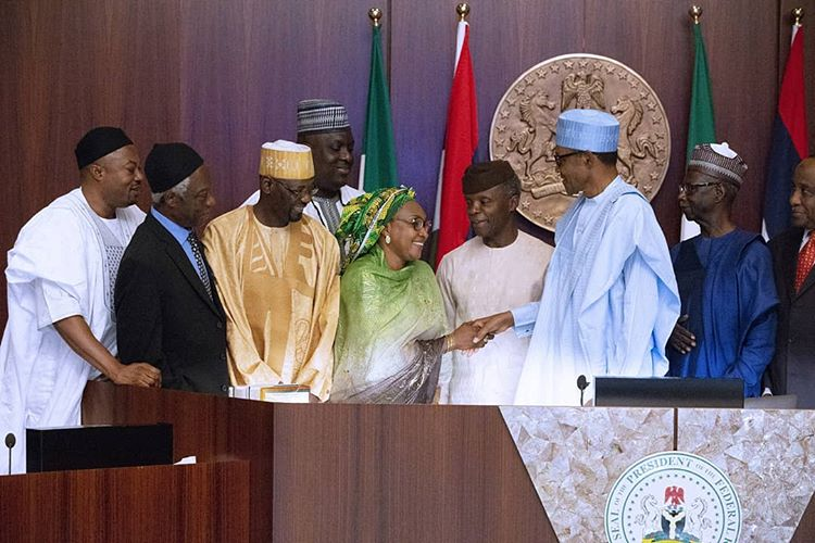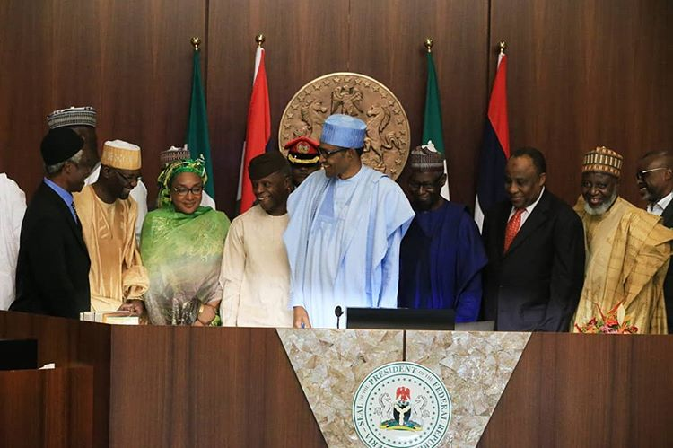 President Muhammadu Buhari today swears in board members of North-East development commission at the council chamber in state house Abuja.