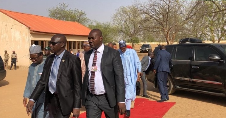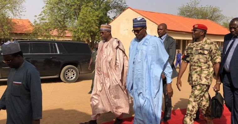 President Muhammadu Buhari visited Government Girls Science and Technical College, Dapchi, Yobe state, where Boko Haram insurgents abducted 110 students last month.