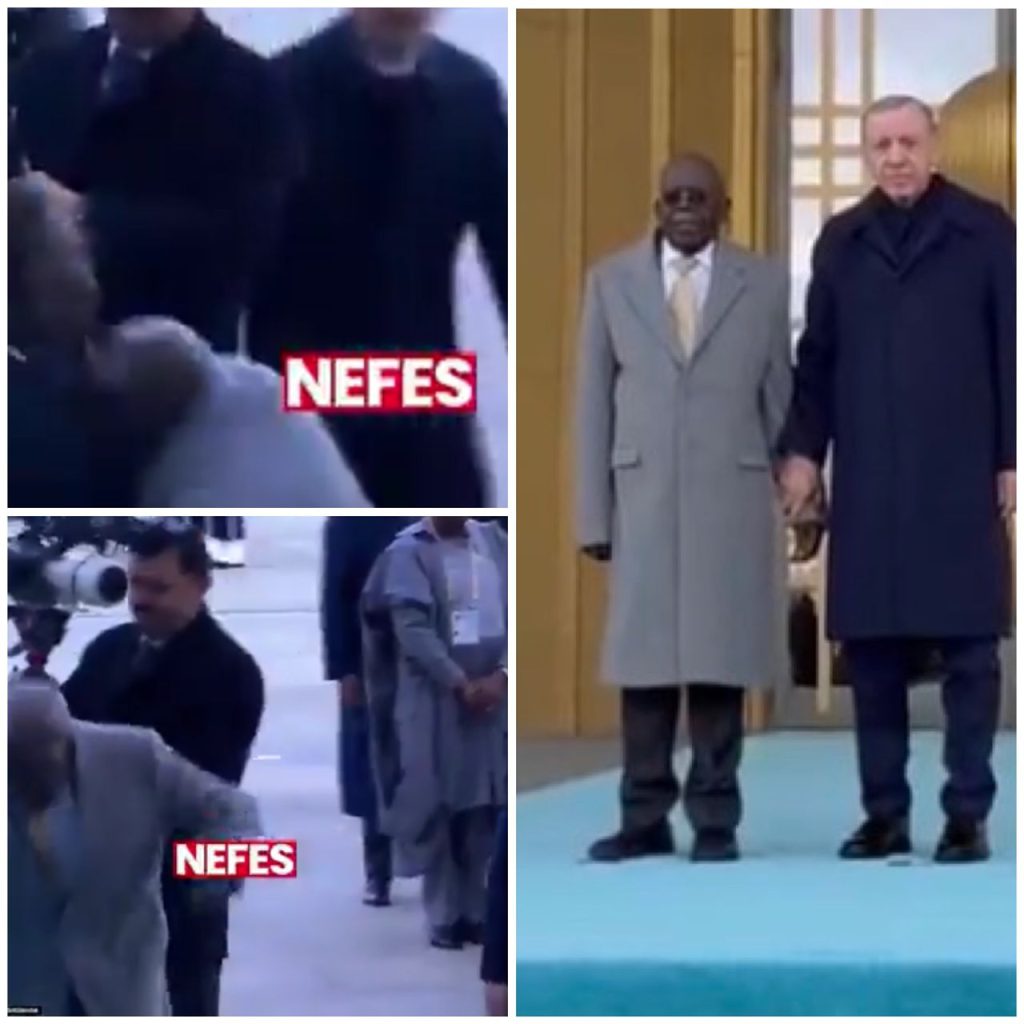 President Bola Tinubu briefly stumbled and fell during a ceremonial march-past organised for his reception at the parade ground in Türkiye on Tuesday, January 27.