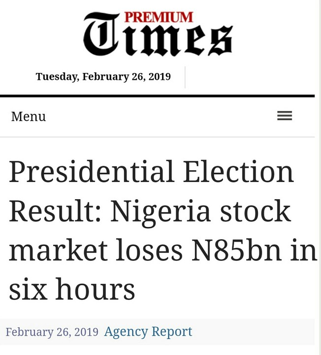 Buhari win has ruined the Nigerian stock market, they were expecting an Atiku victory. Atiku who is business friendly would have added to the stock market.