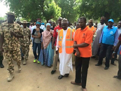Presidential fact finding Committee and officials of National Emergency management Agency (Northeast zone), Borno State Emergency Management Agency and National refugees commission where at Bama on Thursday, June 30, on an assessment of Bama internally displaced persons (IDps) as directed by the president of federal republic of Nigeria President Muhammadu Buhari to verify the purported cases of malnutrition in IDP camps.