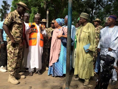 Presidential fact finding Committee and officials of National Emergency management Agency (Northeast zone), Borno State Emergency Management Agency and National refugees commission where at Bama on Thursday, June 30, on an assessment of Bama internally displaced persons (IDps) as directed by the president of federal republic of Nigeria President Muhammadu Buhari to verify the purported cases of malnutrition in IDP camps.