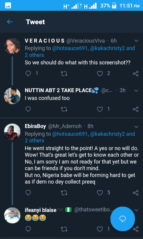 Lady was looking to laugh off a guy’s advances on Twitter but instead got the vitriol of Nigerians.