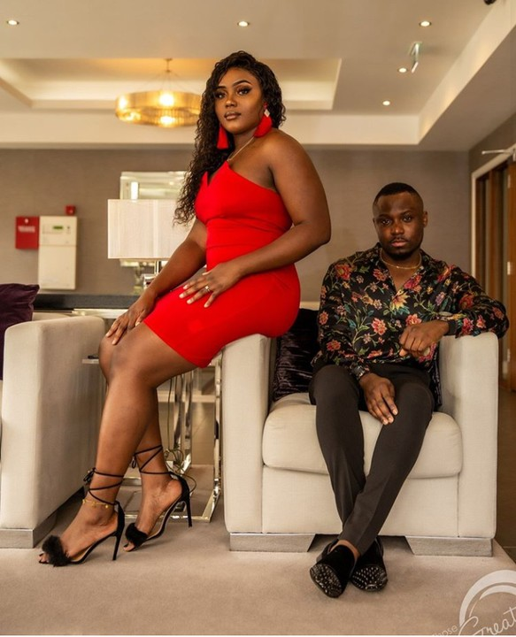 A very beautiful lady whose name is Cynthia rocks open chest Ankara outfit as she poses with her fiance, Peter in pre-wedding photoshoot.