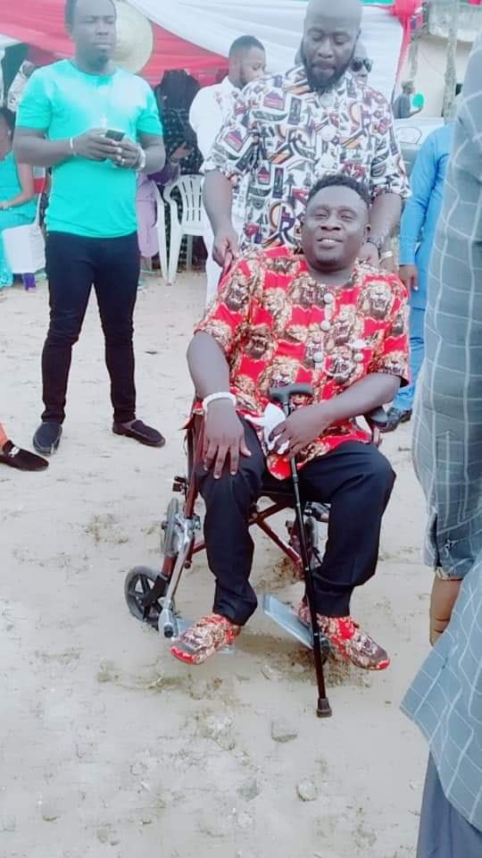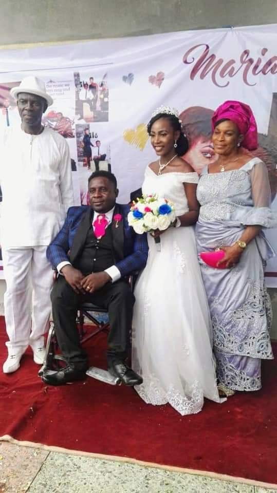 The physically challenged man identified as Mr Ukpabi got wedded in a wheelchair to his beautiful bride yesterday in the presence of family, friends and colleagues in Abiriba area.