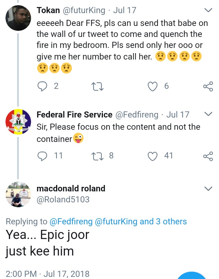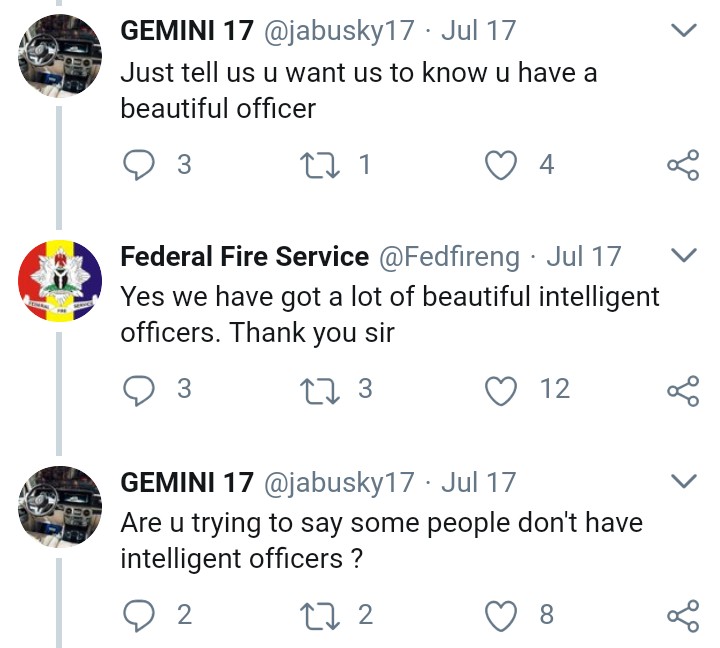 The tweet was shared with the photo of this very pretty fire fighter and trust Nigerians to ignore the message and focus on the lady.