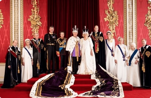 In the group shot, Charles and Camilla take center stage. Standing beside the king is Princess Anne, his sister, and her husband, Timothy Laurence.