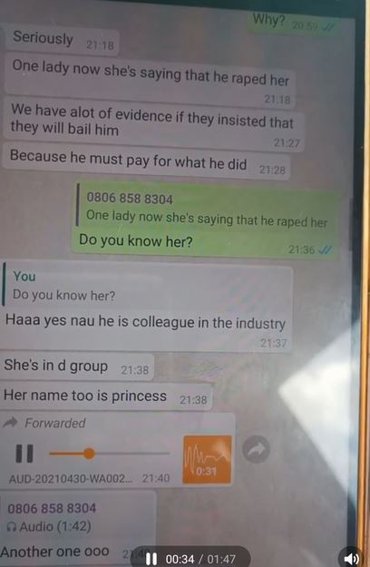 In a voice note released by Princess, a Nollywood actress is heard narrating how Baba Ijesha tried to rape her on set.
