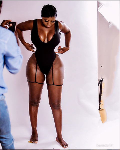 The Gambian Ghana-based actress took to Instagram to put her curvy body on display while posing in a tiny black swimsuit.