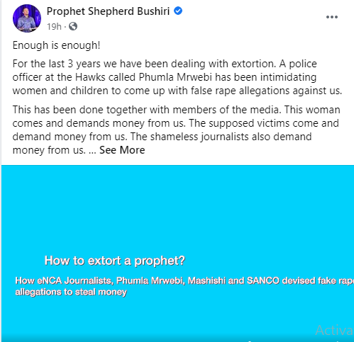 Bushiri warned the alleged extortion syndicate of a “serious legal suit” that will ensue with all the “overwhelming” evidence against it.