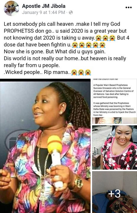 Announcing the demise of the Prophetess on Facebook, Apostle JM Jibola wrote: