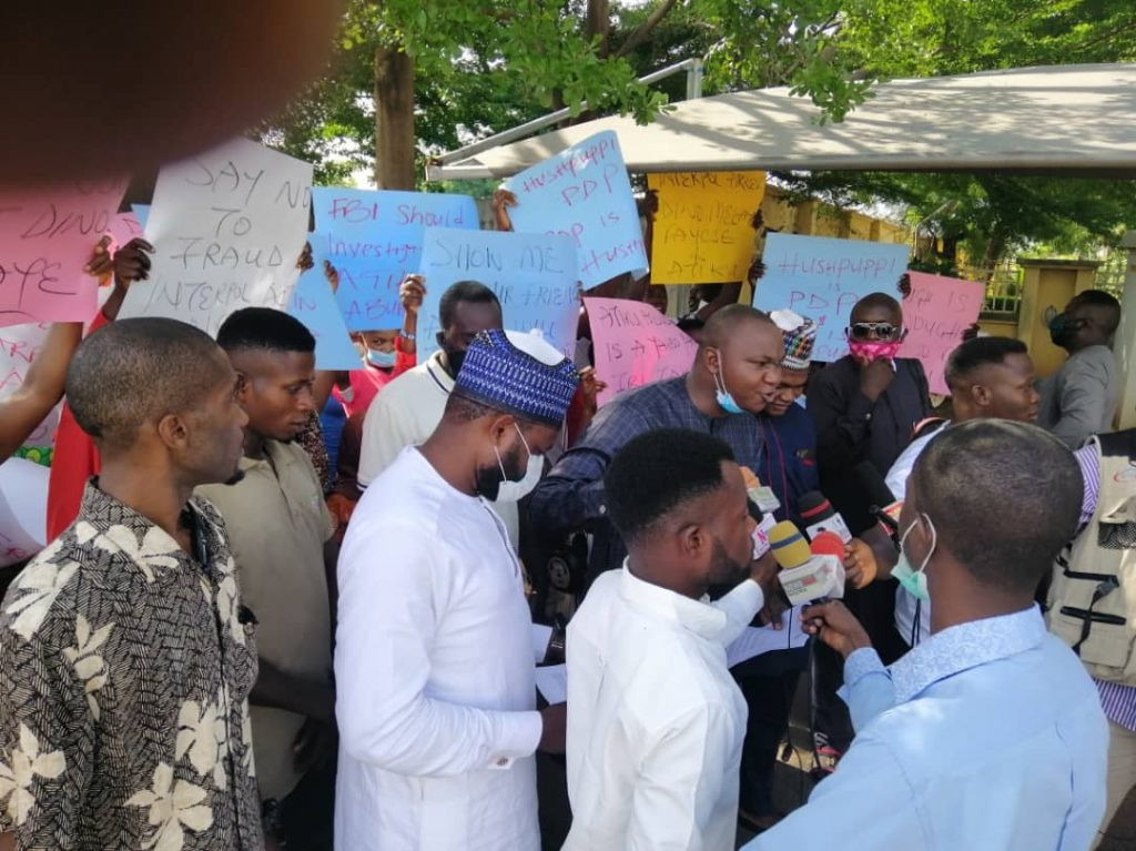 Some protesters on Monday July 6 stormed the US embassy in Abuja, demanding the arrest of former Vice President Atiku Abubakar, Timi Frank, Dino Melaye and other Peoples Democratic Party (PDP) stalwarts, and an investigation of their link to arrested suspected Nigerian fraudster, Raymond Abbas Igbalode a.k.a Hushpuppi.