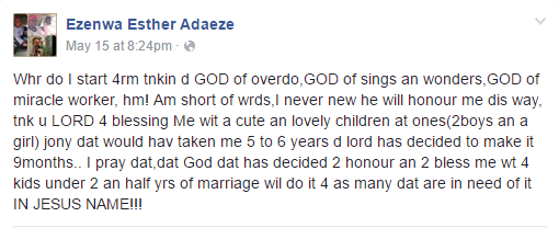 Ezenwa’s triplets – 2 boys and a girl were delivered safely just two and a half years into her marriage. Big congrats to her.