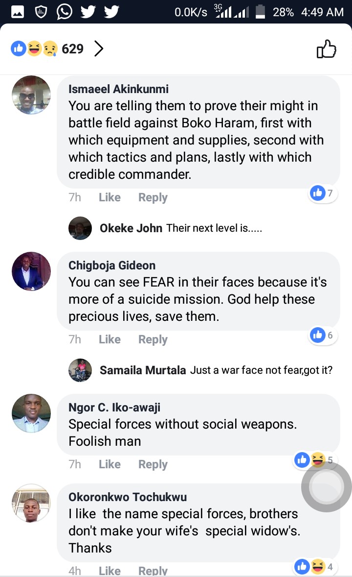 He is not serious. Let him go to the front line with the troops and proof to bokoharam that he is the chief of army staff.How can u call someone special when u know truely that d only thing that make dem special is training. Bokoharam Dont have respect for training. What d respect is better fire power.Guys Dont mind him o.Take cover and save ur lives from these blood thirst bokoharam idiots.