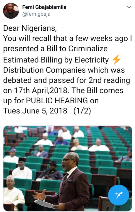 A member of the House of Representatives, Femi Gbajabiamila has sponsored a bill to criminalise the practice of estimated billing in Nigeria. A publuc hearing on the bill is scheduled to hold on June 5th, 2018.