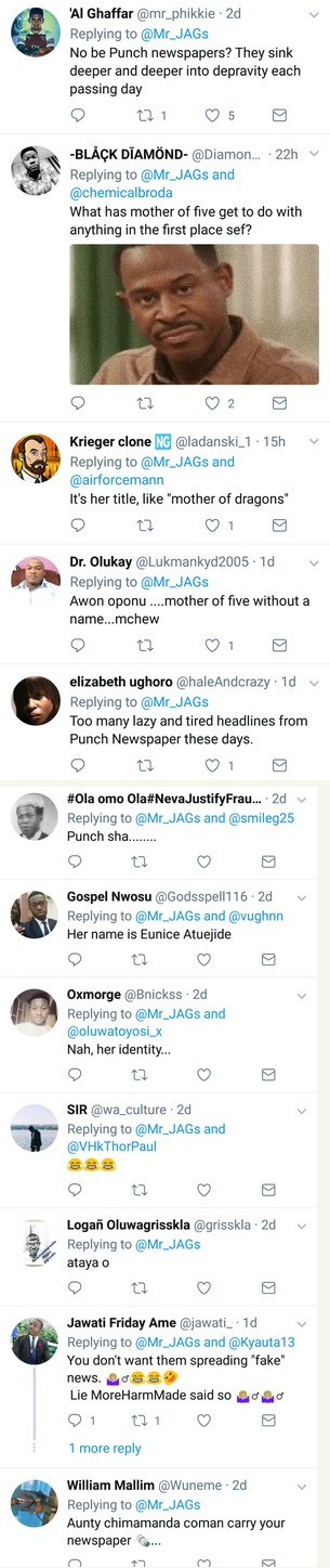 Punch news nigeria was attacked by twitter users for referring to (Eunice Atuejide) a female presidential aspirant for the 2019 election as “mother of five”.