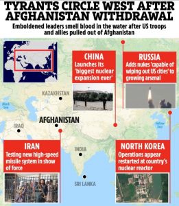 Tyrants across the world are set to exploit America’s weakness following the shambolic fall of Afghanistan, experts warn.