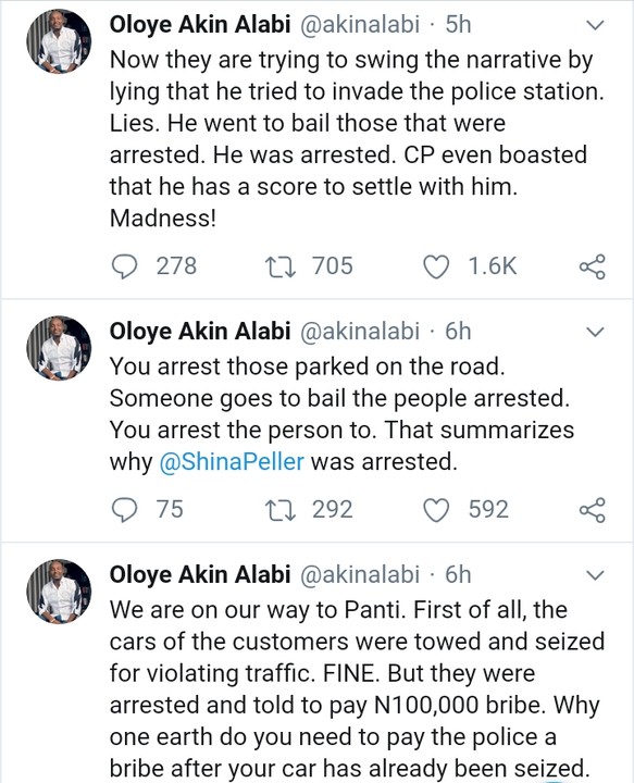 “Now they are trying to swing the narrative by lying that he tried to invade the police station,” Alabi said. “He went to bail those that were arrested. He was arrested. CP even boasted that he has a score to settle with him.”