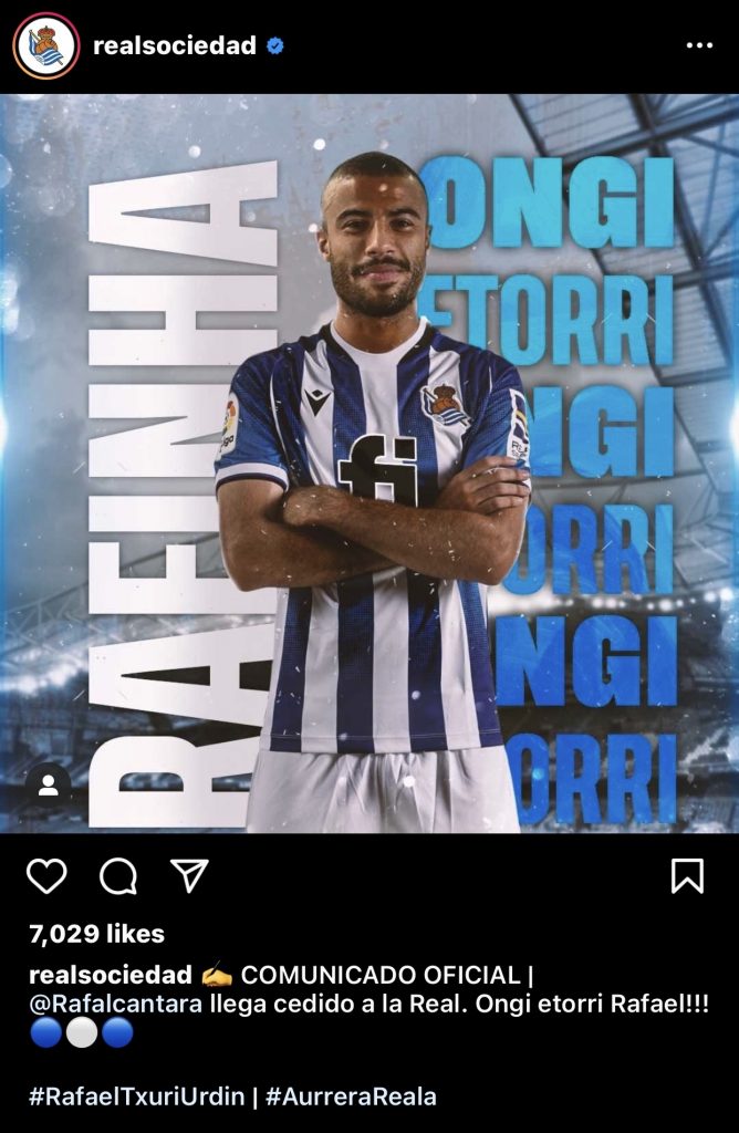 Official: here we go confirmed. Rafinha has been announced as new Real Sociedad player coming from PSG. 🤝🇧🇷 #RealSociedad