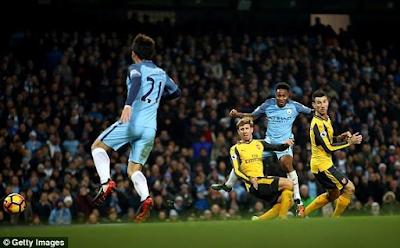 Man City kept up with their title hopeson Sundayas they defeated Arsenal 2-1 in the Etihad stadium much to the delight of manager Pep Guardiola.It was a game between two managers looking for ways to pile up pressure on league leaders Chelsea, a match meant for the football neutrals, a match meant to deliver goals especially with all the attacking talents on display and it didn’t disappoint at all as Arsenal very early in the 5th minute scored, after shady defending from Kolarov and Nicholas Otamendi allowed Theo Walcott to latch on to a Sanchez pass and dispatch the ball beautifully into the net.